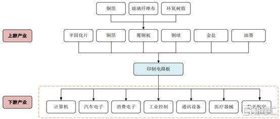 印制电路板(PCB)行业上游为生产所需的原材料,包括覆铜板、半固化片、铜箔、铜球、金盐、油墨等。