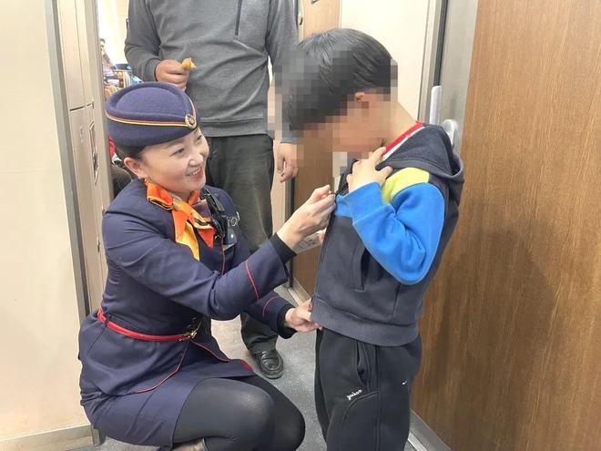 当天是除夕,这一来一回,肯定会耽误不少时间。钟鑫为旅客送上了小零食,缓解旅客着急情绪。小小的举动,如冬日暖阳,瞬间驱散了一家人心中的阴霾。到站后,钟鑫带着谢女士一家人与车站办理交接并告知换乘流程,谢女士感动得流下热泪。