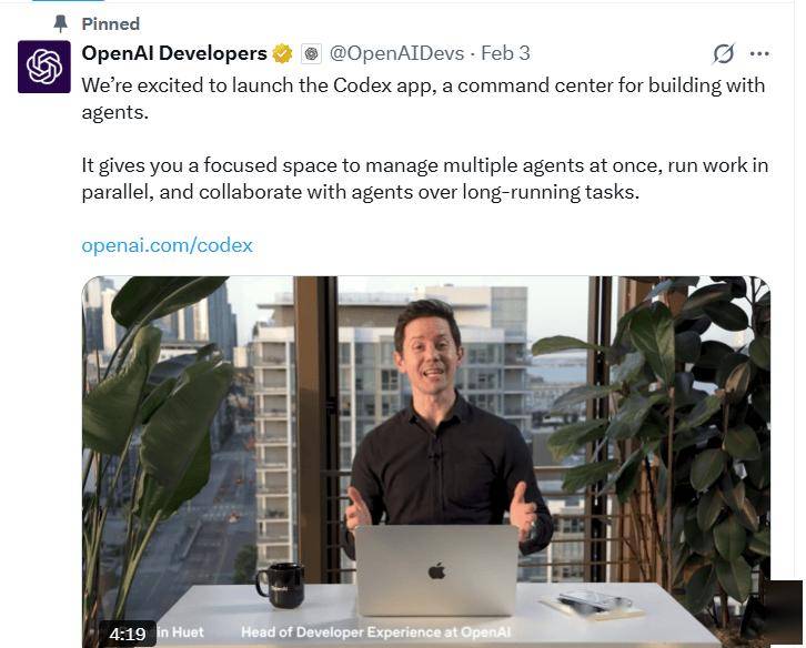 而公司最新发布的 Codex 桌面应用标志着 OpenAI 编程策略的范式转移。不同于传统的对话式界面,Codex 被设计为一个“Agent 指挥部”。
